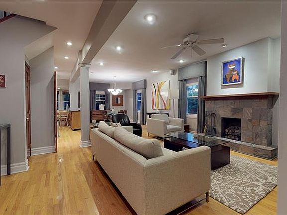 Sharp! Open floor plan. Great for entertaining. High ceilings with recessed lighting. Hardwood floors. Gas fireplace in living room. Spacious kitchen with island, great counter space, plenty of storage, and window seating area. Spacious rear deck with plenty of room for dining and relaxing. Large covered front porch. Large master bedroom. Steam setting in shower and also a whirlpool soaking tub. 2nd floor laundry. Some newer windows. Updates throughout this beautiful home including automatic opening and closing Hunter Douglas window blinds, powder room on 1st floor, newer roof, newer kitchen and newer baths. A wonderful place to call home!
