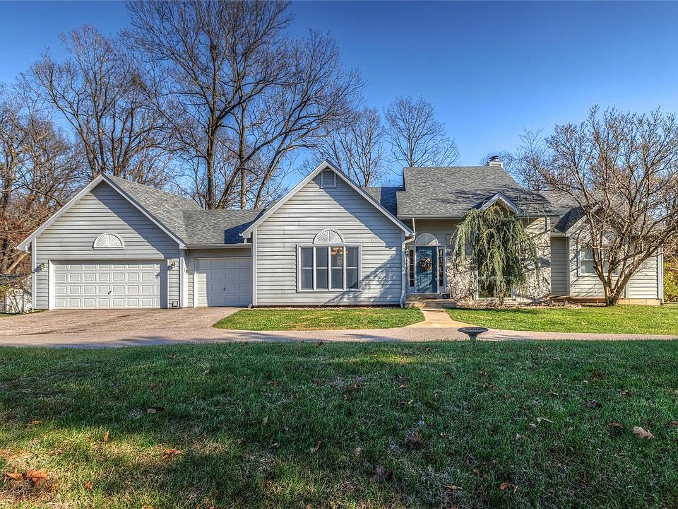 Come visit this exclusive enclave of homes with acreage and beauty all around. This atrium ranch home boast 3200 square feet of living space on over 5 acres. So many special features: 3 FIREPLACES, sunken living room, oversized family room, huge dining room, large windows, a kitchen nook with a gazebo ceiling and a darling shed in yard. No neighbors behind or across to display the beauty of the land at every window. THREE CAR front entry GARAGE, asphalt circle drive and on a cul-de-sac. UPDATES include new flooring, granite counters, light fixtures, appliances, kitchen sink, paint, water softener, faucets and freshly cleaned carpets! Gorgeous oversized main floor master bedroom suite with large shower, separate tub, walk-in closet and cozy fireplaces. Lower level bedrooms are incredibly large. Versatility abounds to use one as an office or craft room! So convenient with just 10 minutes from the Wildwood Town Center shops. This 4 bedroom, 3 bath home could be your private dream oasis!