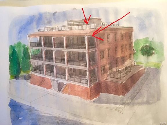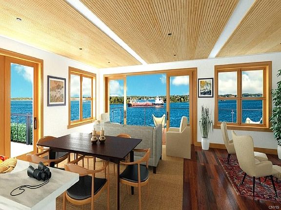 Luxurious turn key condominium with heart stopping views in historic River community of Clayton, NY. Designed by the premier firm of Grater Architects, P.C., no limit to quality has been spared. They are being constructed with the intention of having the least amount of future repair & maintenance. Sound proof, green, energy efficient with beauty and function being the ultimate goal. This A unit is exceptional as it includes a spectacular private roof-top terrace where the dramatic views and signature Calumet vistas are endless. Watch the lakers and salties go by your home from the terrace, large deck and living space. Walk to shops, restaurants, museums and galleries. Condos include underground parking and storage and commercial grade elevator.The ultimate River home can be yours.