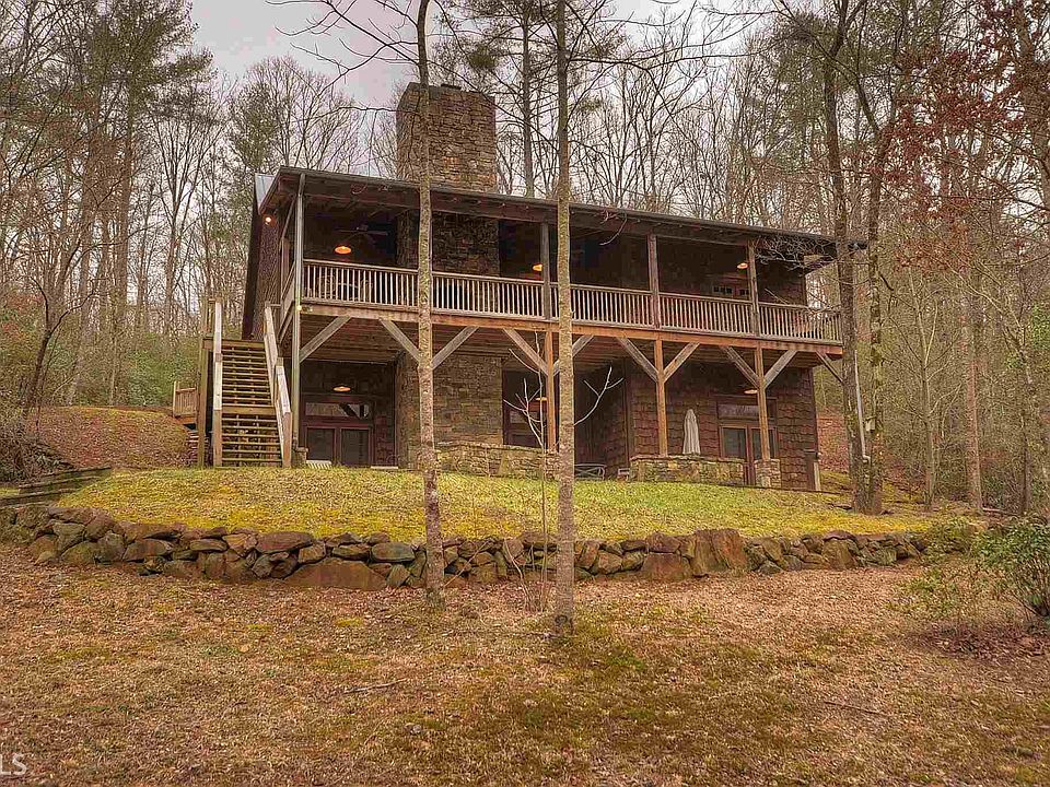 River Front Beauty! Stunning Rustic Home is close to historic downtown & recreation areas, yet tucked away on generous wooded tract...true Craftsman Quality with Rustic Flair & Distinct Detail...4 bedroom/3.5 bath Lodge Style cabin is nestled on large water front with towering hardwoods & lush landscape, lavish living area boasts "sky high" ceilings & post and beam accents, chef's custom cabinetry & soapstone counters, upscale fixtures throughout, full finished terrace level w/ grand wet bar & custom wood stove, massive stone "wood burning" masonry fireplace adorns great room, oversize party porch boasts fireplace & views of level rushing river frontage, features it's own "island" and gentle gathering spot at waters edge, easy access, fabulous firepit.