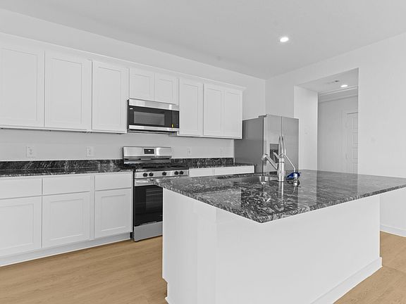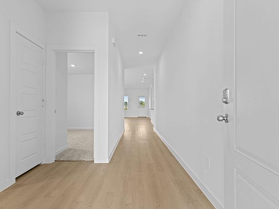 The primary suite is located at the back of the home and includes a luxurious ensuite with dual vanities, an oversized shower or optional soaking tub, and a walk-in closet. The utility room is conveniently located near the kitchen for easy access to laundry.