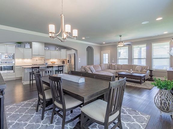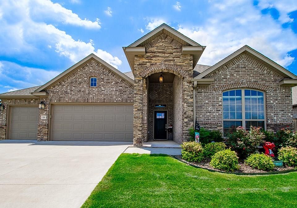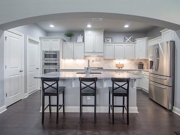 Welcome to 519 Rustic Creek Lane...an absolutely stunning home located in the Brentwood subdivision! Kitchen features 3cm granite, gas cooktop, pot filler, built-in oven/microwave, under cabinet lighting, single basin sink & walk-in pantry. The open floor plan is an inviting & spacious layout. Head outside to relax on the oversized back patio with gas grill connection, custom curtains & mounted tv. Upgrades throughout make this home one you'll want to see! Nest system, patio curtains & patio tv convey.
