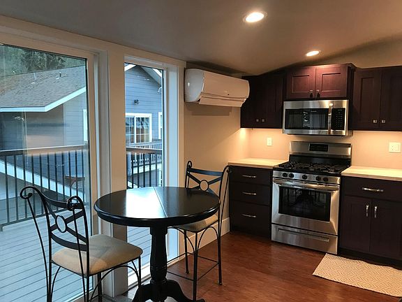 Newly built FULLY FURNISHED Second floor guest house with large windows, spacious patio with outdoor seating, gas grill and quality finishes throughout. Bedroom has a queen size bed and an oversized closet. The living room features a gas fireplace and stone hearth. The sofa has a true queen pull out bed, great for guests. Bathroom is spacious with sliding glass doors & double showerheads. Kitchen is fully equipped with everything you need to cook, make coffee and more! We also have a washer dryer in unit. The single car garage is great for safely storing any belongings, but there is a height restriction of 5ft so not suitable for any vehicle larger than a "compact". Located in the Heart of Coeur d'Alene's Sander's Beach Neighborhood- the home is the prime location for access to the beach for swimming, Tubbs Hill for hiking, the Centennial Trail for walking and biking. A hop skip and a jump from the downtown "coeur": great food, live music and shopping will keep you busy for days. 6 month lease preferred, but open to month to month, best rate for 1 year. Small dogs ok- No cats. Owner pays internet, water, sewer, and garbage. Renter pays $68 month for gas and electric. Renter responsible for cable, if desired. No smoking, no candles, no fish. 6 month lease minimum, discount for 1 year lease.