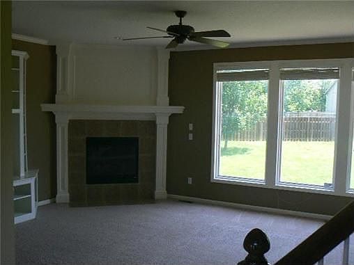 Great location with new 6’ ft privacy fence featuring a backyard which has a gray slate, stamped Concrete with a Weston seating wall and fire pit b for entertaining stretching the length of the house.