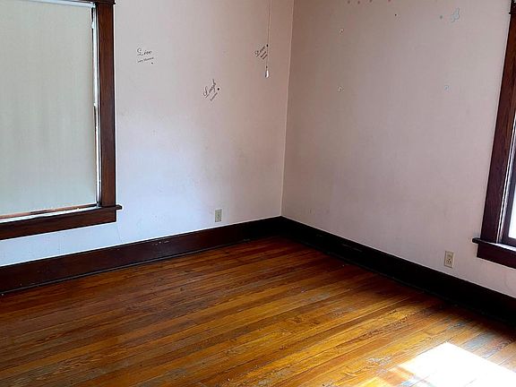 Beautiful turn of-the-century home. Three stories with finished attic. Five bedroom, 2 bath craftsman home with gorgeous untouched woodwork. Reproduction (pot belly) pellet stove in the entry. Some of the windows have been replaced, newer sewer line needs some updating. Good sized living area and generous dining room with alcove beyond. Vintage cabinets in the kitchen with appliances. Bsmt with side door entry as well. Two car garage in back, sits on Large Lot with room for play or garden.