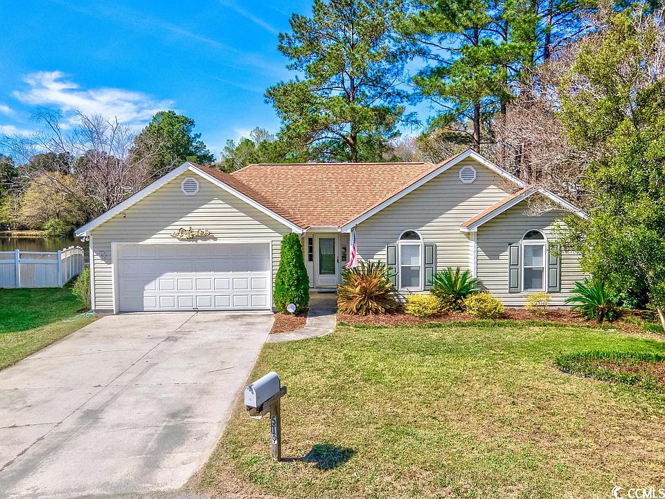 QUICK MOVE IN AVALIABLE on this lake front 3-bedroom, 2 bath home with a large lot and NO HOA fees! This singe level home has been nicely upgraded with wood look tile flooring throughout the kitchen, living room and Carolina room areas! Kitchen features a new stainless-steel refrigerator with in-door ice maker, new stainless-steel dishwasher, new stainless-steel microwave and a good-sized pantry. Sliding glass door leads out from the Carolina Room to the 20x11 back porch with a beautiful view of the large lake behind the home! The large master bedroom features a tray ceiling/w ceiling fan and wood look tile flooring. The unique master bathroom features 2 separate vanities, walk in shower 2 walk in closets and large garden tub! Both guest bedrooms feature ceiling fans and new carpet. Home features double hung vinyl windows. Architectural shingle roof installed 2015, water heater installed 2015, HVAC system replaced in 2019. The spacious 2 car garage features a new garage door opener with remote. This home is located just off HWY 544 in Myrtle Beach and is a short drive from area beaches, shopping, dining and entertainment venues. Do not pass up your chance to own this unique and beautiful home! Call today to schedule your showing.