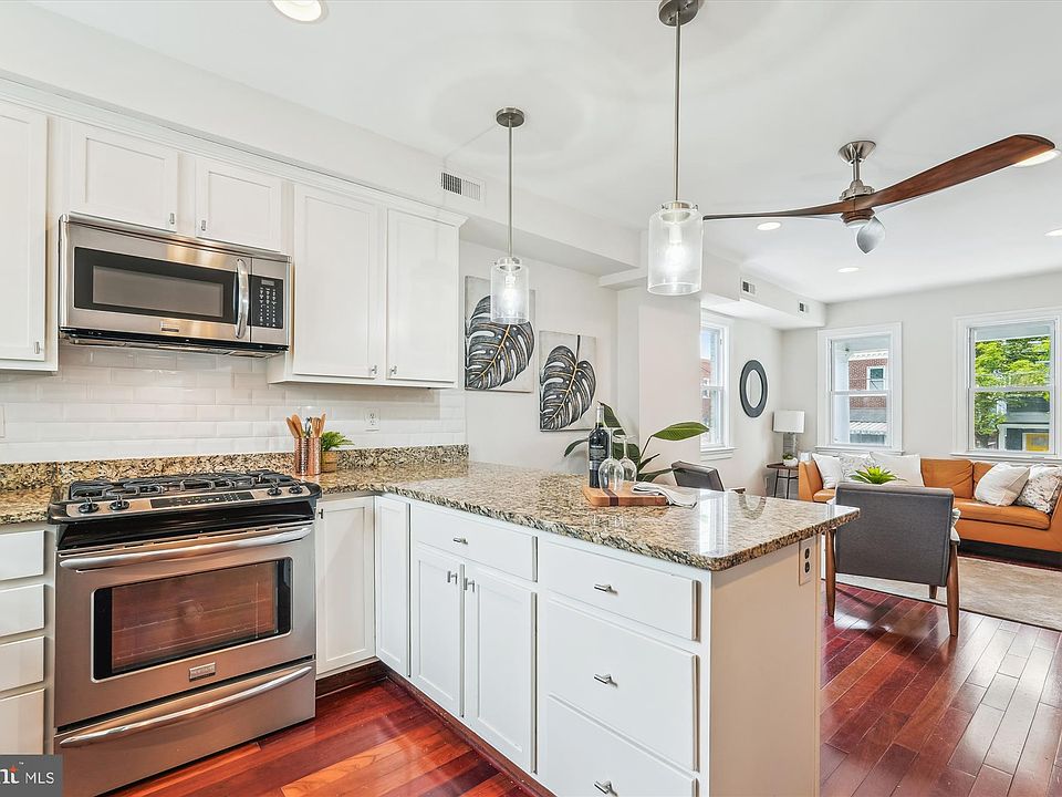 This remarkable end unit has a modern layout combined with remarkable Federal-style charm. The highly functional main level layout is comfortable for living, relaxing, or entertaining. With a spacious and versatile open living area, large open kitchen with broad counters, and amazing lighting, you will feel at home when you walk in. Unlike many homes in the immediate area (where the guest bathroom is often situated in the middle of the living room or kitchen - central to the living and dining areas) on the main level, this home has its guest half bathroom thoughtfully placed at the rear of the home. This simple modification provides an enhanced sense of comfort and privacy for both you and your guests that (almost) no reasonable amount of money could rectify. The intelligent design ensures you can use every square inch of this home effectively, eliminating any wasted space. Furthermore, the living and entertainment area on the main level offers exceptional versatility in its configuration. Whether your preference is for a cozy TV setup or a welcoming space for reading or board games, this layout accommodates various lifestyles, a refreshing departure from the constraints you’ll often find in other mid-century floor plans. Beyond its smart layout, this home features sophisticated modern finishes that are tastefully executed. From the beautiful hardwood floors throughout the main level to the updated flooring on the lower level and upper levels, this home is well done. The main level includes the coveted and very modern open concept living space highlighted by a renovated kitchen, all stainless steel appliances, natural light, and a large peninsula island and bar. The lower level features a very private rear bedroom with a beautifully renovated and accessible en-suite, plus a large and bright front room for an additional family area or office. The upper floor features a rear master bedroom, well-finished full bath, and sunny front bedroom or office with a view of the street. And all areas have deep, very spacious closets! Let's not forget the incredible LOCATION of this home! It's conveniently situated close to numerous eateries, green spaces, playgrounds, community initiatives, nightlife, as well as easy access to transportation. Whether commuting across-town or long distance transportation, you are covered. The home is less than 1 mile (.8 miles) from Takoma Metro, and various bus lines. To put it plainly, this home truly is move-in-ready and will make any buyer a happy homeowner! Please feel free to contact the listing agent if you have any questions or would like to schedule a private showing.