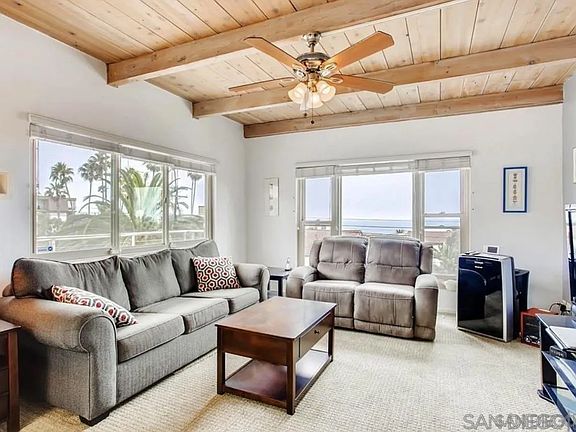 Coastal Living Awaits in Del Mar! Discover your dream of living in the heart of Del Mar with this stunning 2-bedroom, 1 bath OCEAN VIEW condo. This charming single level residence is just a short stroll from the beach, trendy dining spots, and boutique shops, making it the perfect retreat for this who crave the coastal lifestyle. Enjoy a host of amenities, including a refreshing community pool, one secured parking space, and a gated entrance for added privacy. The interior boasts an abundance of natural light, featuring elegant wood-beamed ceilings and convenient in-unit laundry. Outdoor remote sunshades allow you to effortlessly soak in the sun or create a cozy shade when needed. Embrace the vibrant Del Mar Lifestyle where surf meets turf-this is an opportunity you do not want to miss!