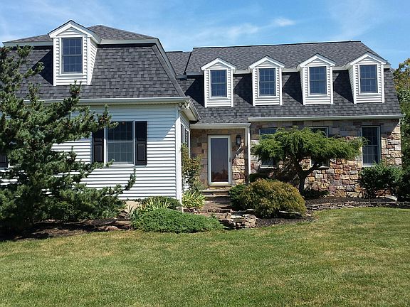 Gorgeous tree lined driveway welcomes you to 519 Telegraph Rd in highly desirable Hilltown township. This 4-bedroom custom home sits on 6 beautiful acres and is a modification of a dutch colonial design by the famous Atlanta architect Stephen Fuller. There are solid wood floors throughout the first floor, on both staircases leading to the second floor, and on the upper hall. Large foyer welcomes you into this pristine home that is great for entertaining. The spacious kitchen with abundant storage, wall oven and granite counters is open to the family room and casual dining room with fantastic garden views. Family room boasts built-in book shelves and a stunning stone fireplace with newer wood burning insert to keep you cozy on those cool evenings and save on other fuel costs. The swinging butler's door opens to a company sized formal dining room and living room. Completing the first level is a powder room with a pedestal sink, 2 large coat closets (one for your guests and one for you), spacious pantry, and a mudroom or office depending on your needs. Quietly situated on the second floor is the master suite offering a full bath with a soaker tub, large walk in closet, and a private office or sitting room. Three secondary bedrooms, full bath, linen closet, and laundry room complete with a wash sink finish this level. The full basement has 2 finished areas totaling approximately 600sq ft, one with tile floor and one with carpet, plus plenty of storage space and work space in the approximately 700sq. ft. unfinished area. Homeowners have made many upgrades and additions in the past 10 years, including recently replacing the roof and deck, building a generous sized pole barn, and connecting to public sewer. There are 4 heating zones, water softener, central vacuum, and a vac pan on the island for broom sweeping. Please see the video tour to appreciate the mature trees, specimen plantings, and scope of the property. This is an exceptional residence with charm, privacy, and timeless style.