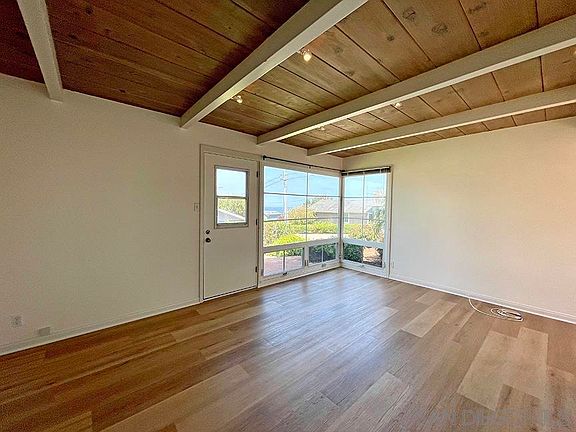 Charming 1-Bedroom Cottage with Ocean Views Del Mar This bright and sunny unfurnished 1 bed, 1 bath cottage in the heart of Del Mar offers cozy coastal living with beautiful ocean views. Featuring beamed ceilings, large windows, and an open layout, the space is filled with natural light and charm. The kitchen includes granite countertops and a full-size refrigerator, while the compact bathroom offers a stand-up shower. Enjoy both a front and back patio perfect for morning coffee or evening sunsets. Shared washer and dryer with neighboring unit. Includes a covered parking spot and a private storage unit. Gardener is paid for by the Owners. Unit has 1 wall adjoining neighbors. Owners live very close by. A peaceful retreat just minutes from the beach, shops, and dining. Looking for a long term lease. Available Oct 1st.