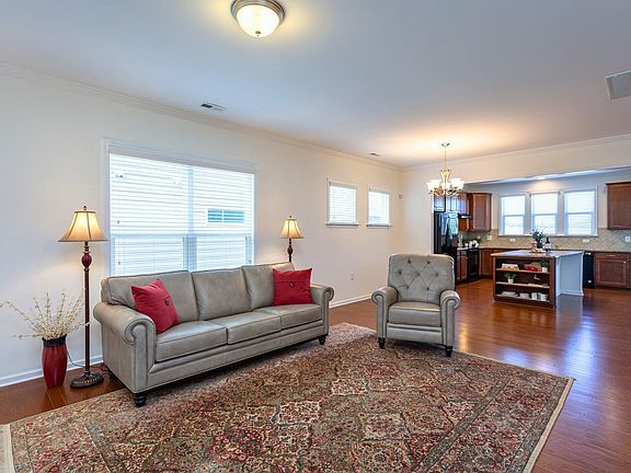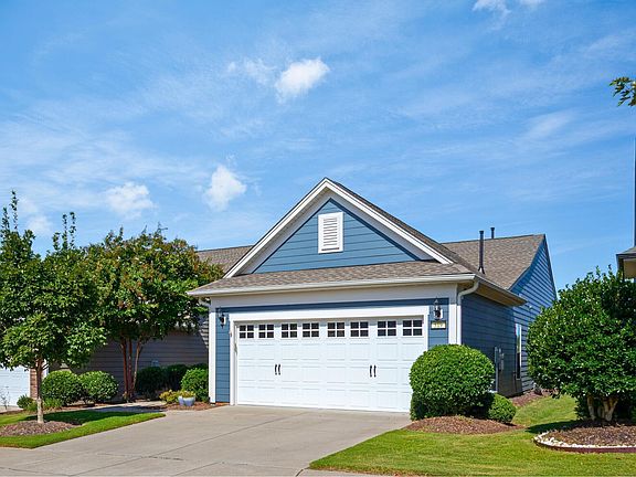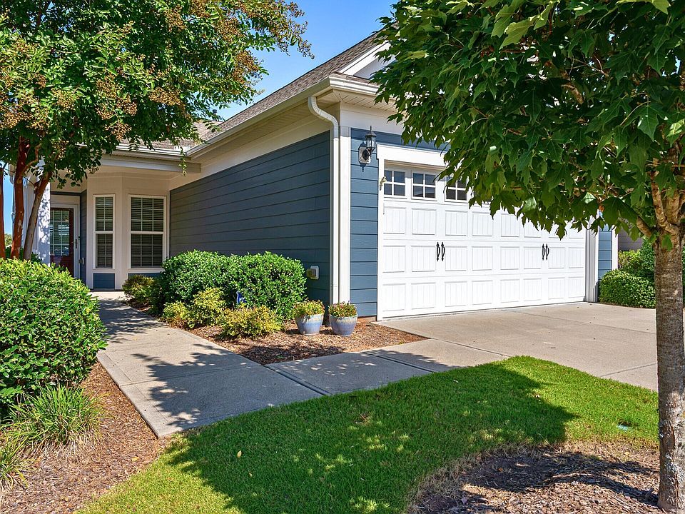 Welcome to low maintenance, high amenity living! This popular Carolina Arbors Taft floor plan delivers a 2-bedroom, 2-bath ranch-style home in the heart of this vibrant 55+ community. Perched on one of the neighborhood's premier lots, 519 Turnstone delivers sweeping views you can enjoy from the bright sunroom or private back patio. Its westward orientation delivers stunning sunsets you'll never forget! Inside, you'll find engineered hardwood flooring throughout the entire home, complemented by elegant granite finishes and refined details like french doors and a tray ceiling. In addition to your sunroom and primary living spaces, an extra flex room offers privacy for a home office, hobby space, or guest area. If you're looking for even more space to stretch out, the extended extra-deep garage easily accommodates vehicles, storage, and more. Plus additional floored storage space in the pull down attic! This home has been thoughtfully cared for and prepared, so you can move right in and enjoy resort-style amenities like swimming, tennis, bocce ball, fitness, walking trails, gardening, and a full calendar of activities. Embark on your next chapter with 519 Turnstone Drive!