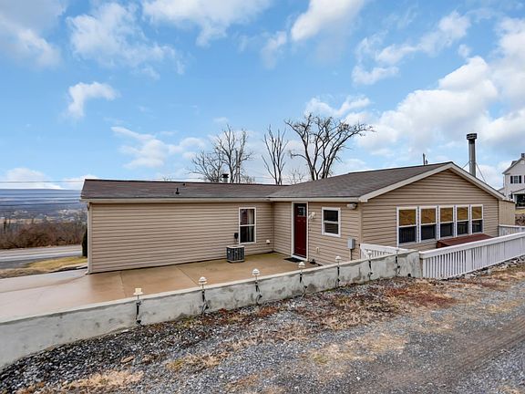 Prepare to be wowed by the spectacular views of Bellefonte from your new home! This 3 bed, 2 bath ranch style home sits on a beautifully maintained 1.3 acre lot with a dual entrance driveway. As you enter the home, youre greeted by an enormous recently remodeled family room with luxury vinyl flooring, 5 windows highlighting the mountain and warmed by a woodburning stove that can also be opened to serve as a traditional fireplace. Boasting features like a newly carpeted master bedroom, central air, wired for sound, concrete patio with electric for hot tub, front deck, detached 2 car garage, pet-patio, and more! Youll fall in love with the camp on top of the property with even better views! The camp features an additional electric service and pad if you desire to add a hot tub for stargazing. Cook stove, electric power to the camp, wired for sound, and a firepit! See it in person to appreciate all of the features at an affordable price point.