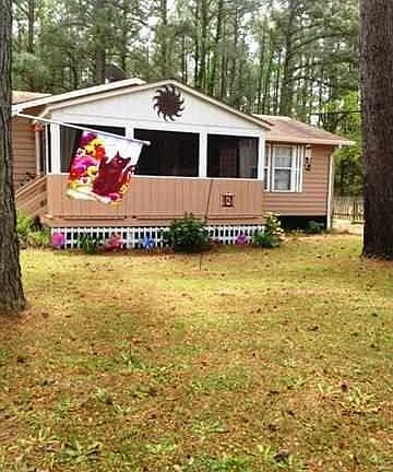 Pristine ranch home in wooded setting in much sought after "THE LANDING". This lovely cottage has 3 bedrooms and 2 full baths and an attached one car garage which could easily be coverted to living space (rec room). Garage has baseboard heat and window A/C unit and garage door opener.; There is also an attached shed in rear of house for more storage; The Master Bedroom boasts a separate bath and 2 large cedar closets AND a separate room which could be an office/nursery/changing area; Laundry room is off the kitchen with Washer/Dryer, water heater and shelves for storage; Bedrooms are all carpeted, but living room, dining area and kitchen have had hardwood floors installed in 2008; One bath is ceramic tiled and the other is vinyl; Recently painted bedrooms and kitchen cabinets; a wonderful front screened porch was added in 2010; There is also a large back deck overlooking a serene "park-like" setting; Fenced back yard for pets/children; Nicely landscaped; Motion activated security lights in front and back of house; Deeded with property is use of "The Landing" sound access with boat dock and picnic area on Captain's Circle; 1/2 mile to ocean and 1/4 mile to Albemarle Sound; Perfect home and location for use as a year round, seconarary or seasonal rental property.