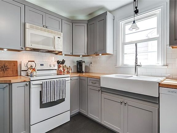 This Updated and Move-In Ready, 3 bedroom Cape Cod home is located in the popular Westvale neighborhood and close to Westhill schools, parks, shopping, and all highways. The first floor features a new kitchen with maple butcher block counters, new flooring and subway tile backsplash. There is a good sized front living room, a formal dining room off the kitchen, a half bath with a new vanity, a 1st floor bedroom or office, and a new convenient mudroom. Hardwood floors and new porcelain tiles fill the living space and kitchen space. The second floor offers 2 good sized bedrooms and a full bath. The dry basement is also finished for added space. The exterior provides a 1 car detached garage, a lush landscaped backyard with a large paver patio. Newer roof, windows and hot water heater.