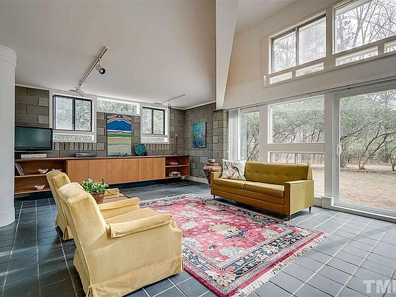 Steal this Home! Amazing modernist design tucked into your own sanctuary amid the trees! Architect built, family home. It's a paradise right in the city limits. Just a few blocks from all levels of school, library, and post-office! City water/sewer available. MOVE IN AND MAKE YOUR OWN DREAMS COME TRUE! Selling AS IS reflected in price. All major systems are new, roof is new, heater is new, range is new - Outbuilding can be rehabbed and imagined into a sweet guest house, or workshop! (has kitchen/bath)