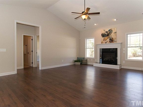 One story with finished bonus on second floor. Huge master suite with his &hers walk in closets, large bath w/his&her vanity, separate shower & garden tub. Large living room open to kitchen & breakfast nook; separate dining room. Utility/mud room off 2 car garage. Laminate flooring, granite counter tops & ceramic tile back splash in kitchen. Gas log fireplace in living room. Screened porch and front porch. Lot bordered with wooded area. Great location just mins. from Raleigh.
