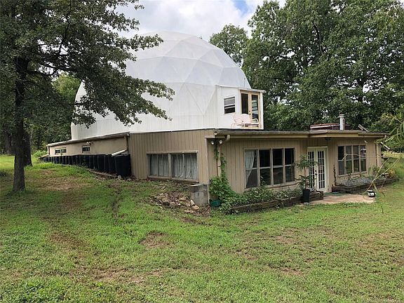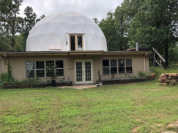 Super unique wooded retreat! 1600sf Berm 3/2 home with 40' circum. dome on top. Sets in the middle of a 70 acre forest. Excellent opportunity for hunting lodge, yoga retreat, or just secluded living. 40X20 shop building.
