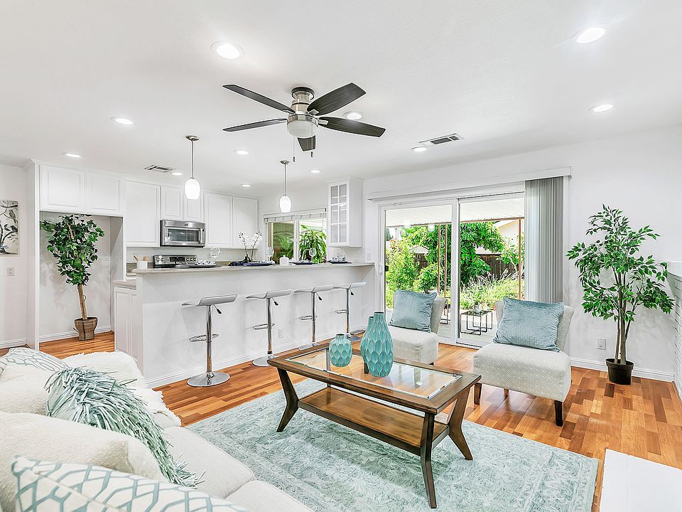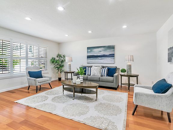 Experience the blend of contemporary elegance and comfort at 5191 Barron Park Drive, a stunning corner lot home in the Vista Park neighborhood. This turnkey single-story residence offers 4 bedrooms and 2 newly remodeled bathrooms in 2,084 square feet. Enter through the designer's door with oval glass inlay into a freshly painted interior, complete with a new epoxy garage floor. Enjoy centralized A/C, wood floors, plantation shutters, and recessed lighting in the bright living room. The chefs dream kitchen features abundant cabinets and a spacious wrap-around countertop with a breakfast bar, opening to a family room with a cozy wood-burning fireplace which is perfect for entertaining and gatherings. A formal dining room offers flexibility for conversion to a fifth bedroom if desired. Outside, the backyard is a gardeners delight with an array of roses and fruit trees such as fig, avocado, lemon, pineapple guava, loquat, apple, orange, and pear. Located minutes from Oakridge Mall, restaurants, VTA light rail, and major freeways, this home offers both tranquility and prime accessibility.