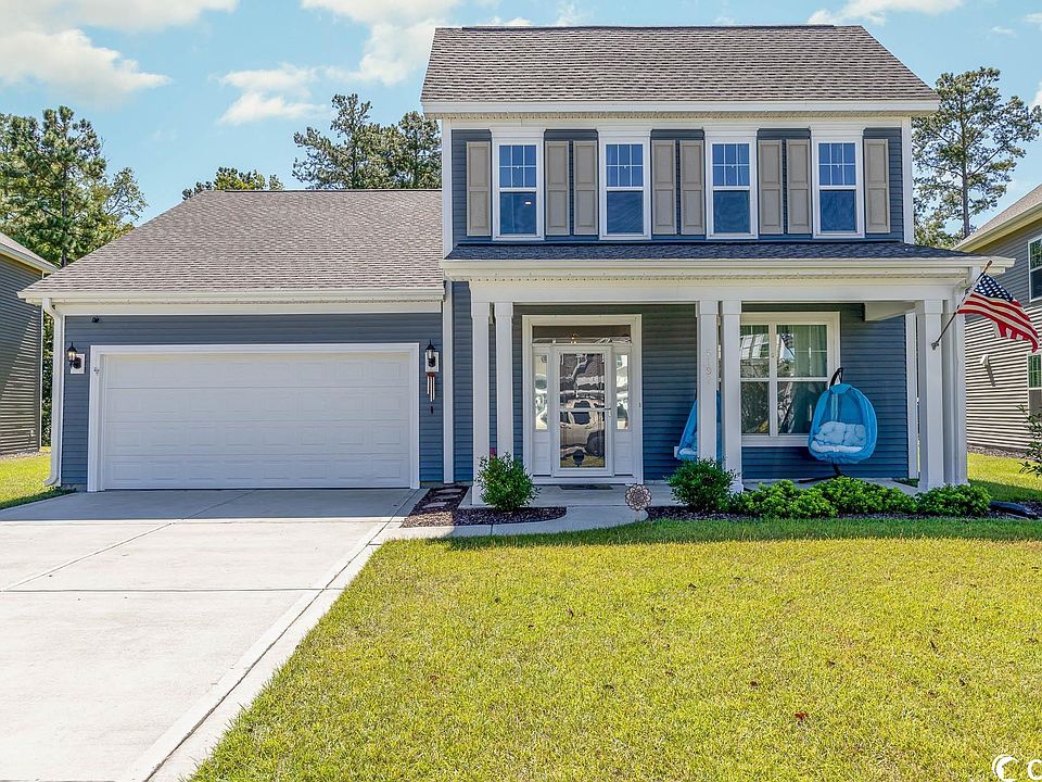 Built in 2020, this "Newbury" Floorplan is located in the highly desired Clear Pond subdivision in Carolina Forest. This spacious 4 bedroom, 3 1/2 full bath offers an open floorplan, first floor master, a laundry room, dining area and office/sitting area. The first floor has laminate flooring throughout and an upgraded a Kitchen that offers 42" cabinets with crown molding, granite countertops, upgraded backsplash, 2 pendant lights, breakfast bar, and stainless steel appliances. The first floor master is very spacious and offers a large master bathroom that offers tile flooring, walk in tile shower with a transom window, granite countertops, and large walk in closet. The second floor offers three bedrooms, two full baths, and a 19'6" x 11'6" loft that offers plenty of natural light and is perfect for a second living area. Other additions include an irrigation system, tankless hot water heater, storm door, gutters, extended patio, upgraded landscaping, and both a front porch and covered back porch that can easily be screened in. This home offers plenty of space, a great backyard, plenty of upgrades. Located only within a couple miles from gas stations, grocery stores, Shopping (Outlets, GrandStrand Mall), Restaurants, Myrtle Beach Airport, and of course the beach. This home is in the perfect location, has been taken good care of and is ready for its new owner. All measurements/information are estimates and not guaranteed. It's the responsibility of the buyer to verify any and all information.