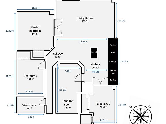 - Total interior livable area: 1,000 sqft