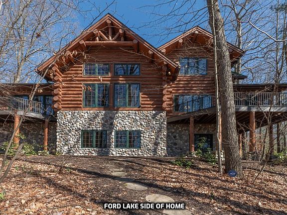 5191 N Benson Road welcomes you! This Ford Lake crown jewel with its elevated view of the lake and its natural beauty of woods, water, and privacy is only bested by this immaculate 4 bedroom, 3 and 1/2 bath quality Maple Island Log built Home. You will bewowed with soaring ceilings, an open layout, floor to ceiling stone wood burning fireplace. This home is made for entertainment with its kitchen, 3 season room off the dining room and living room large enough to host any size group. The strategic placement of this home and its large windows allow for tons of sunlight and amazing views perfect for taking in this 208-acre all sports Lake, with its clear water and tons of fish and depths up to 84 ft. A 70 ft dock gets your access to the water and has your recreation dreams awaiting. The 1800 sq ft lower walk out is perfect to store all your water toys, kayaks, small watercraft etc. The Twp of Fountain has a mission to;" remain largely rural, scenic as it plans to continue its quality of life"! Nearby Ludington boasts state parks, miles of sandy coastlines, lake mi, as well as many inland lakes and rivers. Many festivals, and events, restaurants, shopping, Mason County fairgrounds with too many events to count make this Ford Lake Home a year-round dream or a getaway retreat, and priced right this is the rarest of finds and a great place to start making a lifetime of lake memories!!