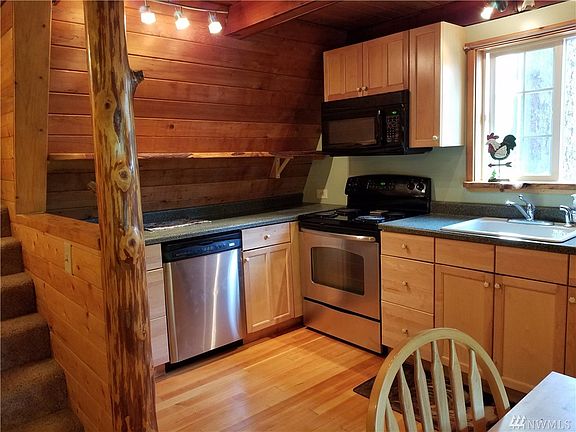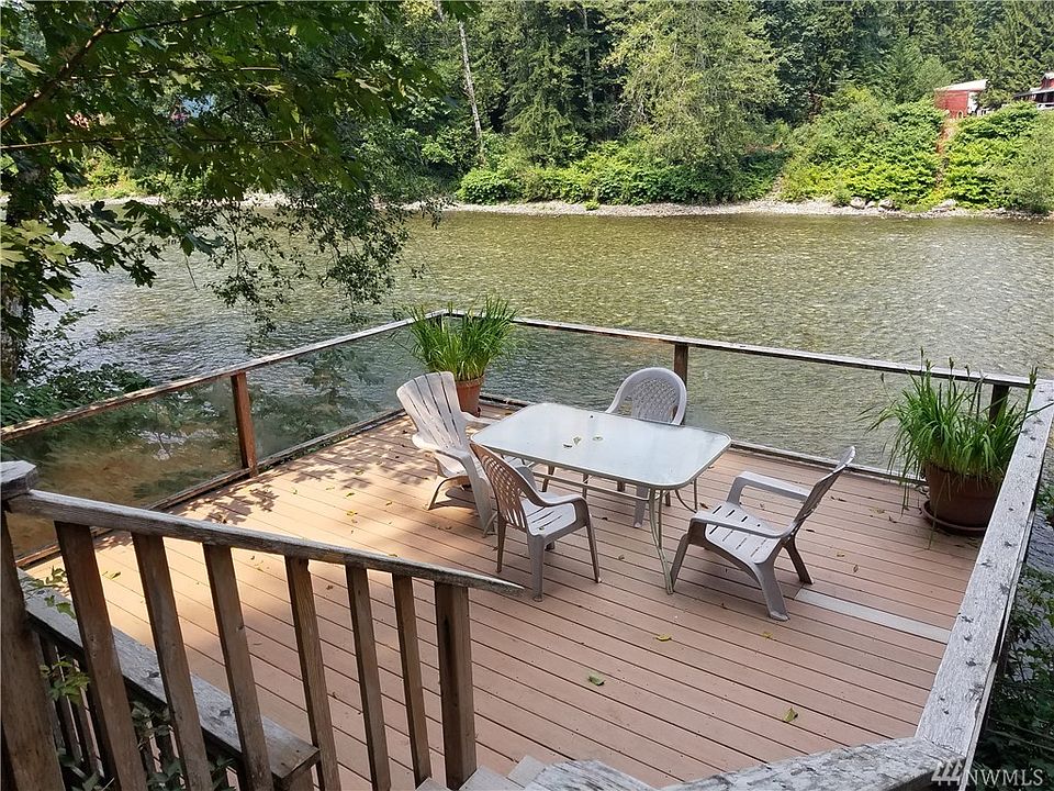 Sweet turn-key ready cabin on 100 ft waterfront in private gated community has amazing views from expansive 2-tiered decking of Skykomish River & Mtns! Completely updated thru-out in 2006, the hand crafted wood work will wow you! Newer kitchen appls & newly refinish hardwood flrs. (non-conform) 2 chamber 1,000 gal septic sys, Sterlite UV water filter sys, generator & fully furnished. Enjoy this peaceful setting as your own getaway, FT living or as a vacation rental & enjoy hiking/biking/skiing