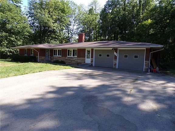 Brick Beauty - Sprawling Ranch offers nearly 2300 Sq Ft. Situated on 1 1/2 Acre this home features Applianced Eat-In Kitchen, Dining Room, Large Living Room with Wall of Windows and Woodburning Fireplace that passes thru to Dining Room. 3 Bedrooms and 2 Full Baths, Attached Garage and Private Back Patio. PLUS Detached Garage great for additional storage. Radiant heat from ceiling in Bedrooms. Well & Septic on site.