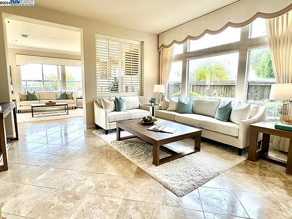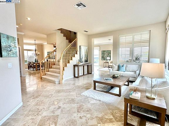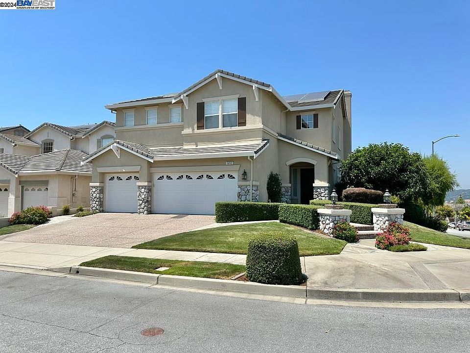 Largest floor plan in Five Canyons. Panoramic views of the bay, San Francisco, and Castro Valley. 4 bedrooms and 3 baths. 1 bedroom and bathroom is downstairs. Huge bonus room can be converted into the 5th and 6th bedrooms or two additional rooms. Huge primary bedroom suite with retreat area, two walk-in closets. Luxurious primary bathroom with jetted tub and shower stall. Beautiful large kitchen with pantry, built-in china cabinet, and large center island. Formal dining room with wine rack and cabinets. Large 3 car garage. On a corner lot with beautiful landscaping. Extensive upgrades through out house. Beautiful tile floor downstairs. Five Canyons HOA amenities include: Tennis courts, pool & hot tub, recreation club house, picnic areas, sports courts, playground. Open House Sunday August 4, 1-4PM