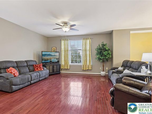 Welcome to this move-in ready townhome located in the sought-after Spring Ridge Crossing community. Enter through the front door into a two-story foyer that greets you into the main level featuring hardwood floors throughout. The thoughtfully designed kitchen offers multiple pantries and abundant storage. A custom-built gate adds a unique and practical touch to the main level layout. Up the two-story staircase, you'll find three spacious bedrooms, including the primary suite with a double door entry, soaring cathedral ceilings, a walk-in closet, and a private ensuite bath. The two additional bedrooms share a full hall bathroom, and the convenient second-floor laundry area adds to the home's functionality. The finished basement is perfect for entertaining or relaxing, featuring built-in surround sound for a true home theater experience. The attached one-car garage includes a 220-volt receptacle, ideal for electric vehicle charging or workshop needs. Recent updates include a new roof and AC unit (2020) and a new hot water heater (2024), offering peace of mind and long-term value. Enjoy all the amenities Spring Ridge Crossing has to offer, including scenic walking and biking trails along the Little Lehigh Stream, fishing opportunities, and the newly updated Spring Ridge Crossing Park and playground. Conveniently located near shops, restaurants, I-78, Route 222, and within a top-rated school district — this is the perfect place to call home!