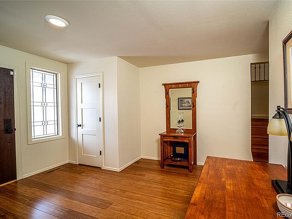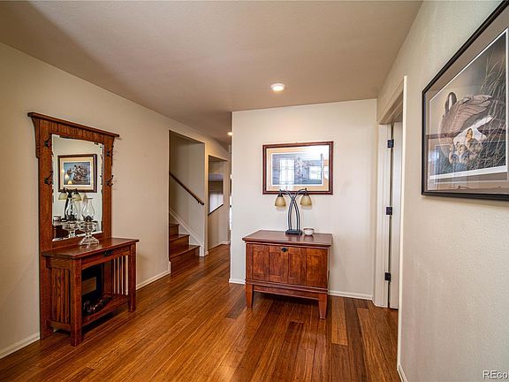 Showings start Friday March 31st on this well-cared-for tri-level home in move in condition! Just in time for summer, you’ll enjoy the beautifully landscaped backyard oasis with an adjustable louver covered patio. The stucco/brick exterior, sprinklered lawn, landscaping and raised garden bed, as well as a sturdy 6’ wood fence means easy maintenance. This attractive home has new durable hardwood flooring on the main level, newer stainless steel kitchen appliances, and newer shaker style interior doors. The home office, kitchen with large walk-in pantry, dining room & 1/2 bath are on the main level. Upstairs there is a spacious primary suite with attached 3/4 bath with heated tile floors and walk-in closet. Two additional bedrooms (1 with a walk-in closet), a full 4 piece hallway bathroom and the attic fan plus swamp cooler finish off the upstairs features. At the patio level is a family room with natural gas fireplace and a newly remodeled laundry/coat room. The unfinished basement is great for storage, and has rough-in plumbing for a future bathroom. You’ll be comfortable in any weather with the high-efficiency forced air natural gas furnace with humidifier, natural gas fireplace insert, air conditioning, roof-mounted evaporative cooler, and whole house exhaust fan. The home does have a radon mitigation system as well. The 2-car garage has newer doors and an epoxy floor coating. There is extra parking beside the garage in front of and behind the fence with no HOA restrictions. An attractive wood-sided shed just off the back yard patio is the perfect spot for bikes, gardening and BBQ supplies. The neighborhood is very walkable with VanBibber Open Space and a neighborhood Prospect Park playground nearby. Drake Middle School and RTD Light Rail Station are within 1 mile. West Arvada Dog Park and Applewood Golf course are a quick 10-minute drive away. Quick access to I-70, Hwy 58 and even Hwy 72, makes heading to the mountains, downtown and even Boulder easy.