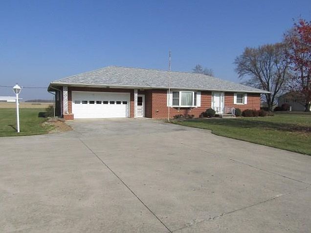 A well maintained brick ranch style home on a 1.14 acre lot located approx. ¼ mile east of St. Marys. Great floor plan, lots of storage, spacious 24' x 28' attached garage with built-in work bench and a 14' x 16' patio in back from which there is a wonderful view of open farm fields. Also included is a cute mini barn for lawn equipment, garden tools, and extra storage. This is a one owner home with lots of room for expansion if desired. Stove, refrigerator, washer and dryer are included as well as all window coverings. New heating and air conditioning system in 2002. New roof shingles on house in 2012. New roof shingles on barn in 2013. Property taxes currently have "Homestead Exemption". They would otherwise be $367.76 higher. Two ongoing assessments are included in property tax figures.