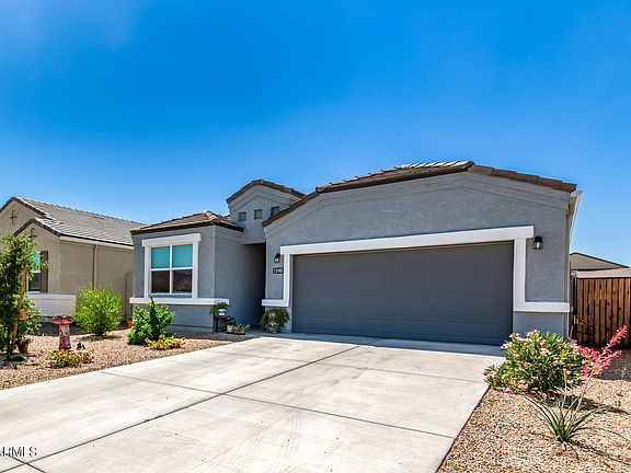 Resale & quick move in opportunity! This 4 bedroom / 2 bath, 1800+ square foot 2023 built residence in Copper Basin is the one you're looking for! Come inside to find the inviting great room offering sliding glass door to the back patio. Lots of natural light complemented by tile flooring, a neutral palette, dual pane windows, & plush carpets in the bedrooms. Stainless steel appliances, recessed lighting, a pantry, plenty of cabinets with crown molding, granite counters, and a prep island with a breakfast bar complete this spotless kitchen. Large primary bedroom showcases a private ensuite with dual sinks and a walk-in closet. Secondary bedrooms include sliding door closets. The spacious backyard has a covered patio where you can enjoy evenings. Seller willing to do concessions if needed.