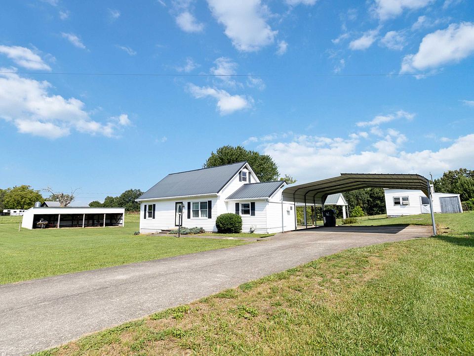 Come home to the country today! You will love this 4 bedroom home on an expansive 1 acre lot in the relaxing country location of Waco and just minutes away from Richmond. This is the perfect property to come in and make your own including awesome space inside and out plus it has KU electric!. Enjoy the living room, den and eat in kitchen which overlooks a beautiful level yard that includes open back patio, covered patio, extra building that with love can be an excellent office or hobby spot, concrete driveway with 2 car metal carport(22x22), storage building, wonderful 4 bay metal storage building 48X20(open at front) perfect for vehicles/ boats/ gardening equipment or you name it, plus a perfect established garden area! Many appealing features in this home with replacement windows & metal roof along with newer front door/storm door. Carpet is covering original hardwood flooring in living room, hall and 1st floor bedrooms. Hardwood flooring upstairs as well! If you like to boat, the College Hill Boat Ramp at the Kentucky River is only 11 miles away! Being sold AS IS, but inspections welcome!