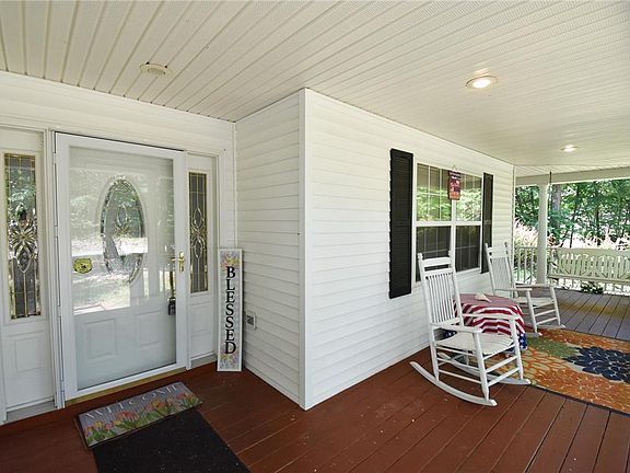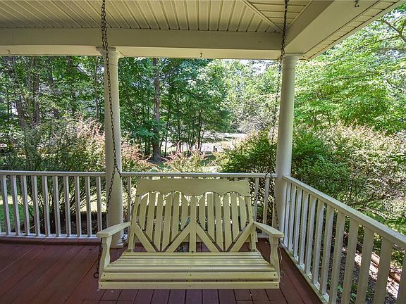 your lush surroundings. The deck overlooks the picturesque wooded lot,