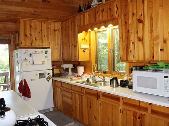 You are one with nature on this very private Crystal Lake property featuring 16 acres of wooded land that is mostly high ground, well treed with hardwoods, pine and various other trees. The property has 322' of sandy/rock frontage on a quiet deep water lake. Imagine yourself driving through the woods ending up at a spot, way in the North Woods. This spot is where you will find a year-round cabin lined with half log siding. The 2 bedroom, 1 bath cabin's interior is finished in knotty pine wood through-out, has a vaulted ceiling and great room containing a kitchen, dining and living room area accented with wood beams, wood burning fireplace and a wall of windows that overlook the property. The upper level has an open loft area, perfect area for sleeping, hobbies or whatever fancies an individual. The lower level has a full, unfinished walk-out basement with high ceiling and has access to the outside concrete patio.