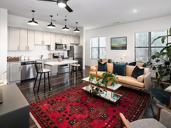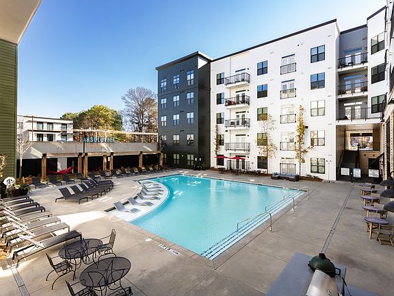 - Exterior features: 42 Cabinets in 2 Color Choices, 9' Ceilings, Bicycle storage, Coming Soon - Google Fiber!, Community Coworking Spaces, Community Kitchen, Energy Efficient LED Light Fixtures, Fire Pits, Flooring: Wood, Granite Countertops, Indoor Bocce, MARTA = 1 Block Away, Multiple Retail Amenities, Outdoor Grills and Smoker, Pup Wash, Rentable Private Offices, Rentable Storage, Stainless Steel Appliances, Tiled Backsplash in Kitchens, Tiled Bathtub Surrounds