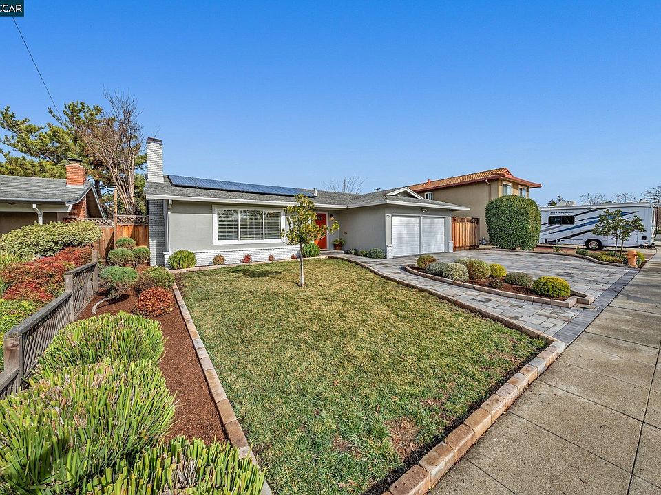This inviting ranch-style home offers many desired features in a great South Livermore location! Upon entering, you will immediately see and feel the spaciousness of the open floorplan combining a large living area with a generously sized kitchen and dining area. Natural light floods both areas and beautiful bamboo flooring throughout the home adds warmth. The remodeled kitchen boasts quartz counters, stainless steel appliances, gas cooktop, backyard bay window, a large island and a breakfast nook with built-in corner benches. The primary bedroom suite features wall-to-wall closets with louvred doors. The front yard is appealingly landscaped and leads to side yard access for your boat or RV. The back yard is large and private, offering a roomy deck, garden and play areas. The solar power is owned. The location is excellent - steps away from Big Trees Park and convenient to schools, shops and vineyards.