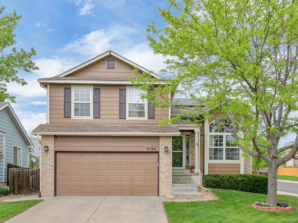 Welcome HOME to this Park View Highlands home on a corner lot located in the award-winning Cherry Creek School District. Feel right at home as you walk into the main living room with BRAND NEW laminate flooring throughout the main level and upper level of the home. Vaulted ceilings, and plenty of natural light in the front living room. This floor-plan flows seamlessly from one room to the next. The eat-in kitchen has plenty of cabinet space and newer appliances. The family room next to the kitchen has neutral carpet, natural light and access to the basement, garage and HUGE back yard equipped with sprinklers in the front and back yard. All bedrooms are on the upper level. Primary bedroom has a walk in closet, ceiling fan and plenty of natural light. The Primary bathroom has tile surround and a vanity with plenty of countertop space. The finished basement is perfect as a 4TH bedroom, rec-room or home office. The basement level laundry room is combined with a 1/2 bathroom. The exterior of this home was painted in 2021. SOLAR PANELS significantly cut down on energy bills and will transfer to the new owners (buyers will assume the existing loan *see supplements*). Furnace and A/C were purchased in 2019. TING fiberoptic internet available. 2 car attached garage has a built-in workbench for any hobbies/projects or storage. Walking distance to the neighborhood elementary school, middle school or high school. Close to parks, trails, shopping, dining and an easy commute in any direction using E-470, I-225 or I-25.
