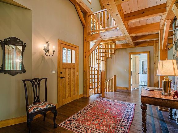 Stunning! Secluded, Eastern white pine timber frame home with post and beam interior. Enjoy this extremely quiet 16.6 acres perfectly nestled near several Fingerlakes. 3 Bedrooms, 2.5 baths with owners suite that opens to lovely stone patio. Peaceful one level living with beautifully designed and well thought out features including handcrafted spiral staircases, library loft, maple hardwood floors, and a grand stone wood burning fireplace. Comfortable one level living that is heated by radiant heat floors throughout. Enjoy entertaining with a fabulous chefs kitchen with granite counters, Wolf range, second Jennair oven, modern and warm design. Formal dining and breakfast room with sliders that open to back deck. Convenient first floor laundry/mud room and attached two car garage. Additional 2600+ sq. ft. barn fully heated with water, 100amp electric, storage and automobile lift, perfect for absolutely any hobbyist. Partially finished basement level with half bath and walk-out makes for ideal work from home space. This is a wilderness retreat with easy commutes to Canandaigua, Honeoye and Geneseo for shopping, 22 minutes to Bristol Mountain Skiing. Virtual Tour!