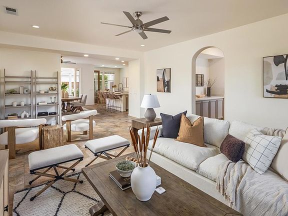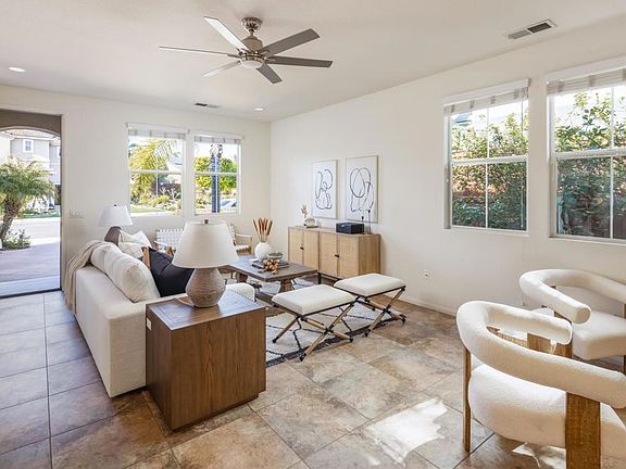Welcome to this updated single-story 4 bedroom, 2 bath home nestled in the desirable Sycamore Springs community. Step inside to discover a beautifully remodeled interior boasting tile floors throughout, creating a seamless flow from room to room. The heart of the home is the remodeled kitchen, showcasing quartz countertops, a generous kitchen island with breakfast bar seating, stainless steel appliances, a gas range, and a convenient walk-in pantry. Adjacent is a charming breakfast nook, perfect for casual dining, and the kitchen opens to the dining room and family room anchored by a cozy fireplace, creating an ideal space for entertaining or relaxing with loved ones. Entertain in style in the dining room, featuring oversized French doors that lead out to the backyard oasis, where outdoor gatherings await on warm summer evenings. The primary suite is a tranquil retreat boasting a spacious bedroom and an upgraded primary bath complete with a large walk-in shower, dual-sink vanity, and a separate water closet. Enjoy three additional bedrooms, and a large, updated secondary bath. Additional highlights of this home include air conditioning for year-round comfort, LED lighting throughout, a 2-car garage for parking and storage, and a large, flat private driveway providing ample space for guest parking or recreational activities. Experience resort-style living with Sycamore Springs community amenities including a gated pool and spa, playground, basketball court, and BBQ area, offering endless opportunities for recreation and relaxation right at your fingertips. Located near parks, schools, shopping centers, golf courses, and more!