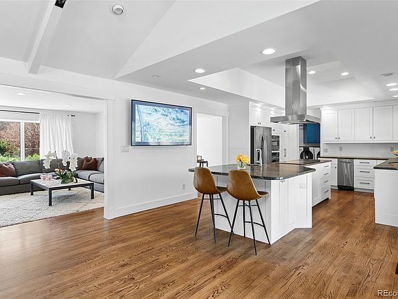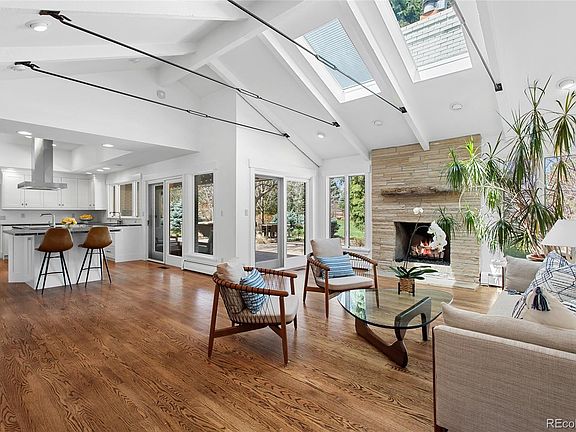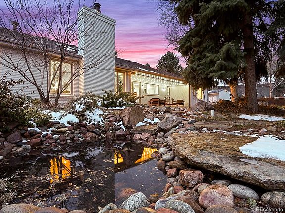 A magical one acre flat lot close to the Highline Canal sets this special property apart. The updated ranch features sunlight space and soaring ceilings. As you enter the home embrace the openness as your eyes are drawn to the vaulted living room surrounded by windows looking onto the lush backyard. The living room opens to the kitchen, which features top of the line appliances and white shaker cabinets. A large family room adorned with crisp built-ins is wired for surround sound and a formal dining room is conveniently steps from the kitchen. An expansive mud room, office and powder bath anchor the home as you enter from the three car garage. The bedroom wing is an indoor oasis with an expansive primary suite with built-ins and a five-piece bathroom with heated floors, dual shower heads and a beautiful custom finished closet with W/D hookup. Two additional light and bright bedrooms share an updated bathroom. The sunlit basement offers another guest bedroom, ample storage and a phenomenal rec room and media space. The chef-d'oeuvre is undoubtedly the park-like back yard lush with mature trees, perennials, flowers, shrubs and vegetation creating a private oasis filled with blooming gifts. Listen to the three tiered pond water feature or dine al fresco prepared in your built-in outdoor kitchen. To further enjoy the outdoor Colorado lifestyle, play on your own 55 x 35 Sport Court or catch the nearby walking path to the highline canal. Private showings begin Wednesday 4/26 at 9 AM. Welcome Home!