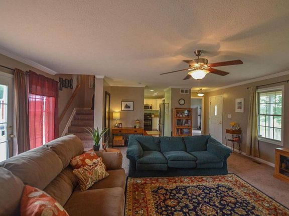 A private lane leads to this charming farm. This 5.68-acre farm features 3 fenced pastures, a 24'x36' barn with plenty of room for storage or "toys". It also has a secondary animal shelter (in back pasture) w/10'x10' storage rm. The home features a great rm w/a wall of windows, fp, crown molding, & glass doors to deck. The light & bright white kitchen has hardwood floors, bay window, recessed lighting, pantry, and stainless-steel appliances. Upstairs are 3 bedrooms and two full baths including an elaborate master suite w/an expansive bedrm w/vaulted ceiling, large walk-in closet, & bath w/stone floors & jetted tub. Also, upstairs is a convenient laundry rm. New furnace, a/c, & water heater in 2013. The park is 2 doors down w/basketball,baseball, playsets,& covered picnic area