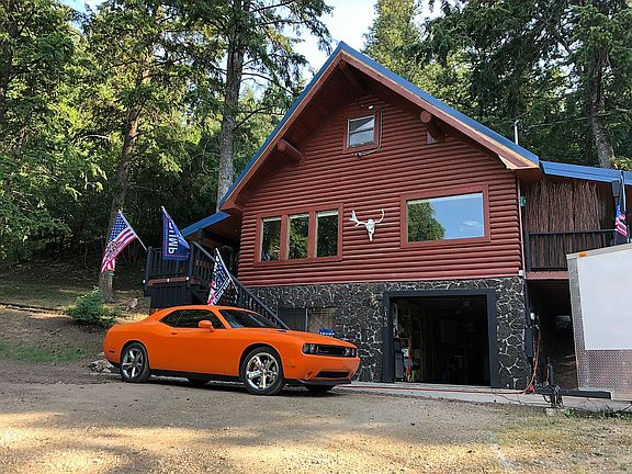 LOG CABIN HOME SITS ON 4.9 ACRES.THIS HOME HAS THREE BEDROOMS,TWO BATHROOMS,LIVING ROOM,OPEN KITCHEN, WITH A LOFT AREA ALSO THERE IS A THREE CAR GARAGE AND SHOP