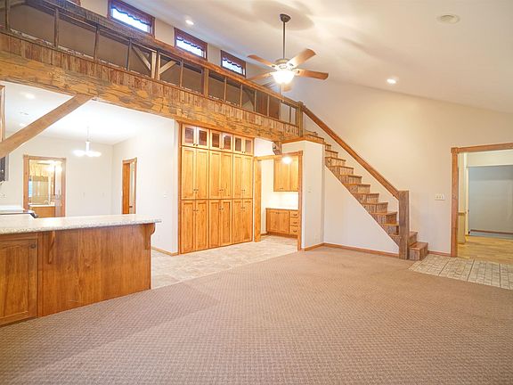 Recently updated and ready to move into 3 bedroom 2/5 bathroom, 2561 sq. ft. home on 4.42 acres with a 54'x36' pole barn and a 40'x32' & 12'x8' storage buildings. A large covered porch provides entry into the vaulted ceiling living room with an overlooking loft area that joins the custom kitchen with breakfast bar, built in pantry, custom hickory cabinets, and butler's pantry w/sink. The dining room is connected to the kitchen that opens into a large family room. The main floor is completed with a generous sized bedroom, a full bathroom, laundry room, and an additional half bathroom. Upstairs you'll find 2 updated bedrooms with hard wood floors, new paint and new carpet. The daylight basement has it's own large multi purpose/family room, a brand new full bathroom, 2 storage rooms and a utility room. This home combines yesteryear woodwork & charm with modern conveniences. HVAC system has just been updated with a high effIciency Trane mini split system designed to heat and cool the entire house. Back up boiler system along with a wood burning addition to the boiler system. Approximately 2.21 acres with buildings, fruit tree orchard (apple, pear, and cherry trees) yard and garden areas along w. 2.21 +/- tillable acres. Kitchen is set-up for a future dishwasher w/ hookups already installed. This property has fiber internet available, is wired for a generator hookup, has front and back covered porches, new textured metal roof (looks like shingles), freshly sealed asphalt 1/2 circle driveway, new 4" well pump, firepit, and too many other items to mention.