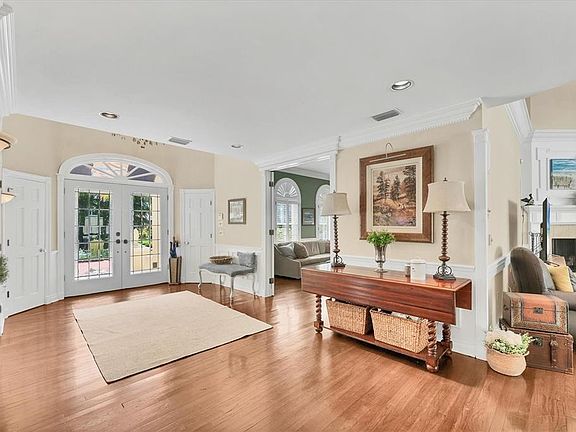 Under contract-accepting backup offers. Grand 2 Story Colonial 5BR, 3.5 Bath & 3.5 Car Gar., Pool home sitting on almost ½ an acre within "The Landings", a majestic West of Trail 24/7 attended guard-gated tennis community (membership optional). As you drive in you will surely see, Moms and Dads riding bikes or roller blading with kids, sisters walking the family dog, or boys with fishing poles heading down to the intracoastal/bay. Arriving to your inviting, charming and elegant home, you would enter the triple wide brick driveway to a side loading garages, and guests are welcomed over a brick half circle driveway to the front and greeted by pineapple topped pillars and black carriage lights to enter through glass haint blue double doors and into the foyer. Upon entering, you know you are in a special space that is warm and inviting with recently refinished real hardwood floors, chair rail, and wainscoting that wraps the walls and is carried through to the Den/Family room w/ wood-burning fireplace to the left, and the right an elegant dining room with a chandelier and ceiling medallion. Stepping straight ahead you’ll pass by the wood staircase with white railings, turned balusters, and acorn-topped newel posts, into the 20’ soaring ceiling living room where the exquisite wood work it taken to another level literally with chair rail, wall molding, upper windows with plantation shutters, and colonial detailed stacked crown molding, highlighted with multi-depth coffered ceiling punctuated by two large iron oval candelabra chandeliers. Of course, this room is also anchored with a grand wood-burning fireplace and mantle. Two quadruple-paned French doors lead out to the massive 43'x14' covered lanai and 52’x30' walled and screen-enclosed all privately housing the 35’x14' heated pool with a 8-person circular spa. This home is a must-see, and I could wax on and on, as each room has the same level of craftsmanship, grandeur with built-ins, bonus spaces plus some hidden features to delight. BRAND NEW $100K ROOF, and Freshly Painted Exterior just completed in Aug. of this year! Enjoy the conveniences of GAS 6-Burner Stove, on-demand water heater, and pool heater. 4 zones of HVAC, two of which are 1 year old, well for irrigation with a Rid-o-rust injector an American Hydro system ensuring happy plants and a lush lawn. These types of homes don’t come on the market very often. Make this spectacular home your home now – before someone else does!