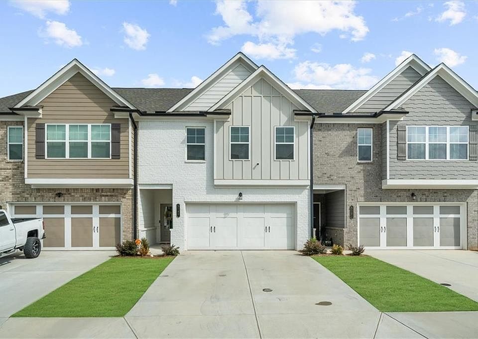 Beautiful, spacious, updated 4 bedroom 2 1/2 bath townhome with a TWO car garage, only 1 year old, with updates that include luxury light fixtures in the dining room area, kitchen and living room, an updated fireplace with a stunning custom color and paneling, and gold cabinet pulls and knobs in the kitchen. This townhome offers an open floor plan with LVT flooring, and a large island. The primary bedroom has trey ceilings and a large en suite with an extra vanity area, large shower and walk-in closet. There is plenty of storage space, with a walk-in pantry and multiple closets. The community has a swimming pool and is conveniently located with easy access to I-985, restaurants, Lake Lanier, shopping and parks. You don't want to miss out on such a fabulous opportunity to live in this growing area!