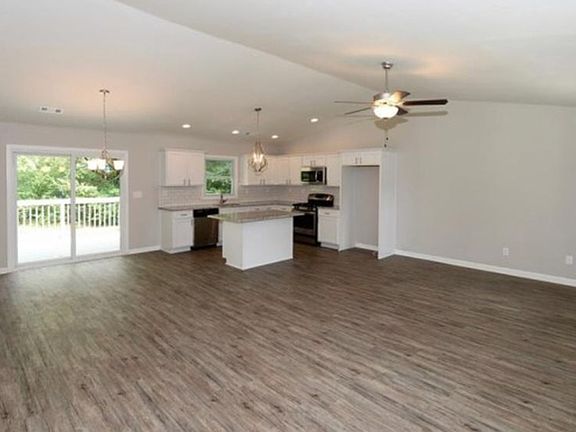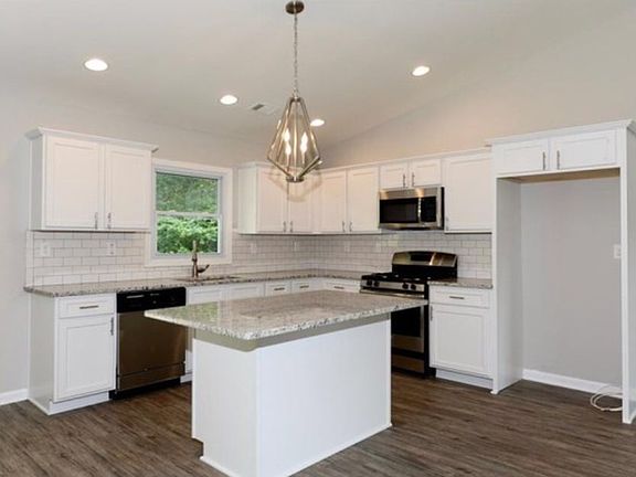 - Kitchen Features: Cabinets White, Island, Breakfast Area, Counter Top - Stone