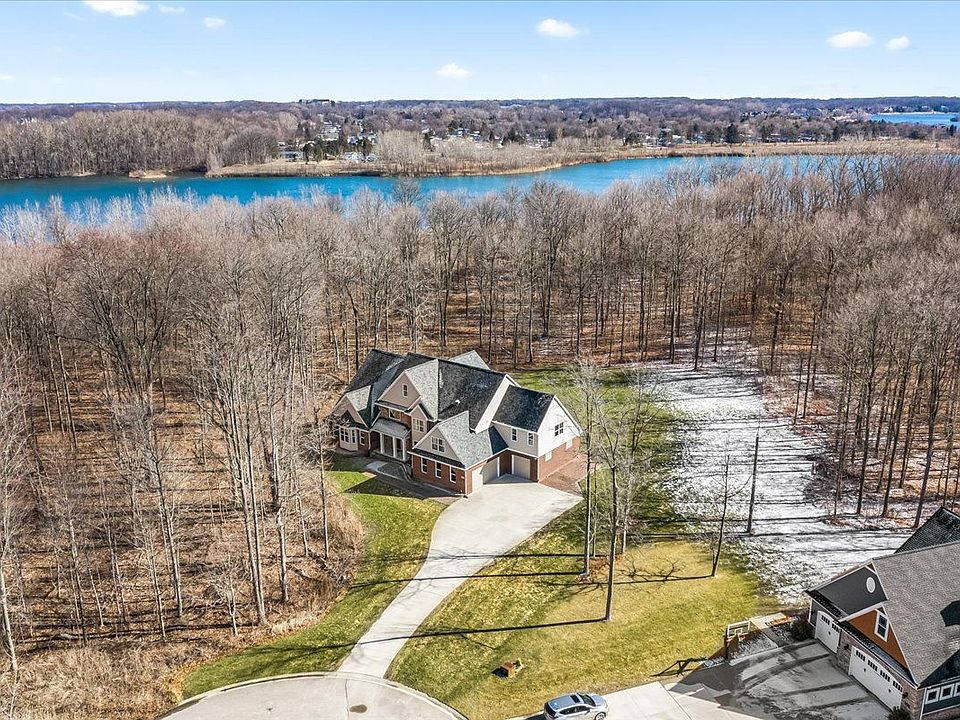 A rare opportunity to own this extraordinary custom built home on almost 6 private acres! One of only four homes on a quiet cul de sac, with wooded view. 5-6 bedrooms offer a multitude of possibilities and room for everyone. A welcoming open foyer leads to a first floor private suite with so many options. With hardwood flooring, full bath, closet and kitchenette, this can be an in-law suite, a productive home office, or movie night at home. Another home office off the main entryway has glass doors. The living room proudly shows off a gas fireplace with stone surround, custom mantle and has glass doors that lead out back. A chef's dream kitchen with soaring ceiling, extensive cabinetry with LED lights, granite counters, ceramic backsplash, Bosch built in ovens, walk in pantry, and large dining area. The first floor primary suite has tray ceiling, hardwood flooring, and walk in closet. The primary bath has had a complete makeover (2020) with a gorgeous stone shower with glass door, deep soaking tub, dual sinks and ceramic flooring. A mud room off the garage entry helps everyone stay organized and leads to a huge laundry room, with lots of counter space and backsplash. This leads to an enclosed 3 season back porch. Head upstairs to find 4 more large bedrooms with 2 dual entry full ceramic baths with dual sinks. All are brightly lit with large windows and 2 have brand new carpeting. Huge basement is accessed by 2 staircases and has endless options to design as you wish and is plumbed for a full bath. This home is built to last and is ready to take on whatever Mother Nature throws at it with 3 high efficiency furnaces, 2 central a/c units, 2 tankless water heaters, 2 sump pumps, central vac system and 2 back up generators! 3 car garage means you'll actually get to park in the garage. This home offers tremendous value at this price with extensive builder upgrades. A private oasis with no HOA gives you the freedom to enjoy in quiet serenity with shopping, restaurants and entertainment only minutes away.