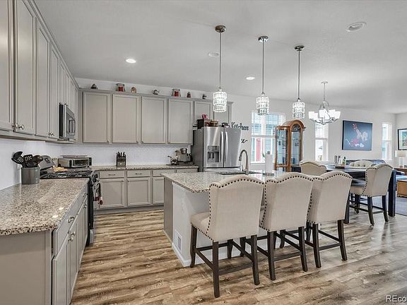 Memorial Sale EXTENDED: Starts May 25th EXTENDS through June 4th. This ideal, spacious walkout ranch features a beautifully maintained interior and comes equipped with 5 bedrooms, 3 full bathrooms. The airy great room features new carpet, and a gas fireplace with 72 inch TV, included. Connected is the upgraded Modern and chic kitchen that has Stainless steel appliances which include a gas range, soft gray cabinetry, a large center island, granite countertops with beautiful herringbone tile design backsplash, and a large pantry. The generous primary main suite has a large walk-in closet, 5 piece bathroom, a ceiling fan, and 42 inch TV. Besides, the main floor has 2 additional bedrooms with a full bath, laundry/mud room conveniently located right off the attached 2 car drywalled garage. The finished walkout basement consists of 2 generously sized bedrooms with walk-in closets, a full bathroom, a large storage area, and a huge family/game room with roughed-in plumbing for a bar. Outside the patio door, you now have an expansive patio with a fenced yard. Pristine luxury vinyl flooring and carpeting throughout the main living spaces. Close to community pool and fitness center. You will love this active and super-convenient location in a quiet Castle Rock neighborhood. Additional, new, upcoming schools, are planned to be built for a close commute. This community offers walking and biking trails, great parks, and open space, besides bird watching. Castle Rock offers restaurants, local businesses, lively entertainment, farmer's market, boutiques, specialty stores, cafes, and bars. Every convenience is just minutes away. A newer home with all of the amenities that can be offered. Great opportunity! $660,000 Price Reduction over weekend $3,000. CC
