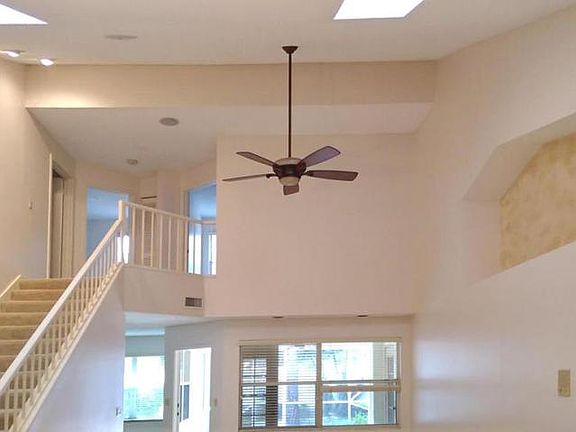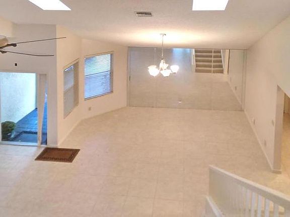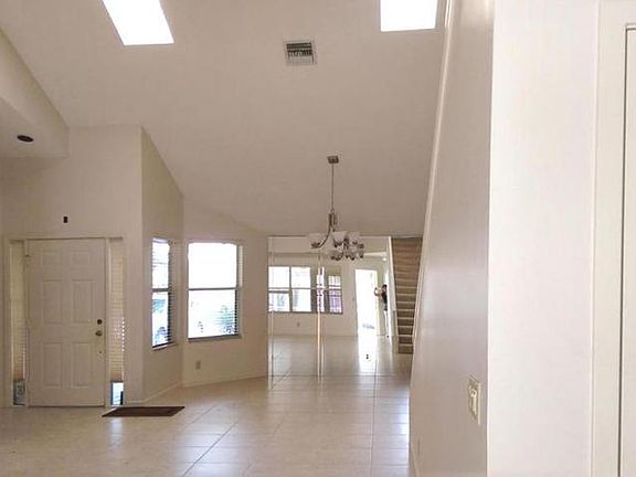 Bright & open floor plan with many upgrades. Master downstairs,two additional bedrooms upstairs, volume ceiling and skylights. Family room opens to living room and kitchen. Separate living and dining room. Covered patio, large screened back yard, large driveway, gated community & community pool. Listed by Real Property Management Palm Beach County